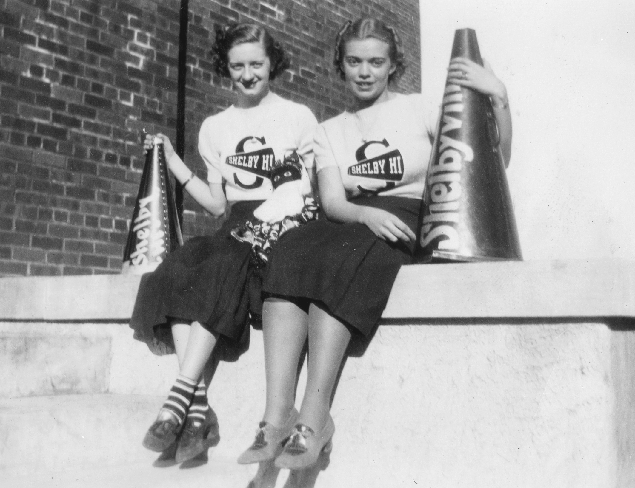 Anna Lee Hardesty and Lucille Eddie get ready to cheer for Shelbyville High School.