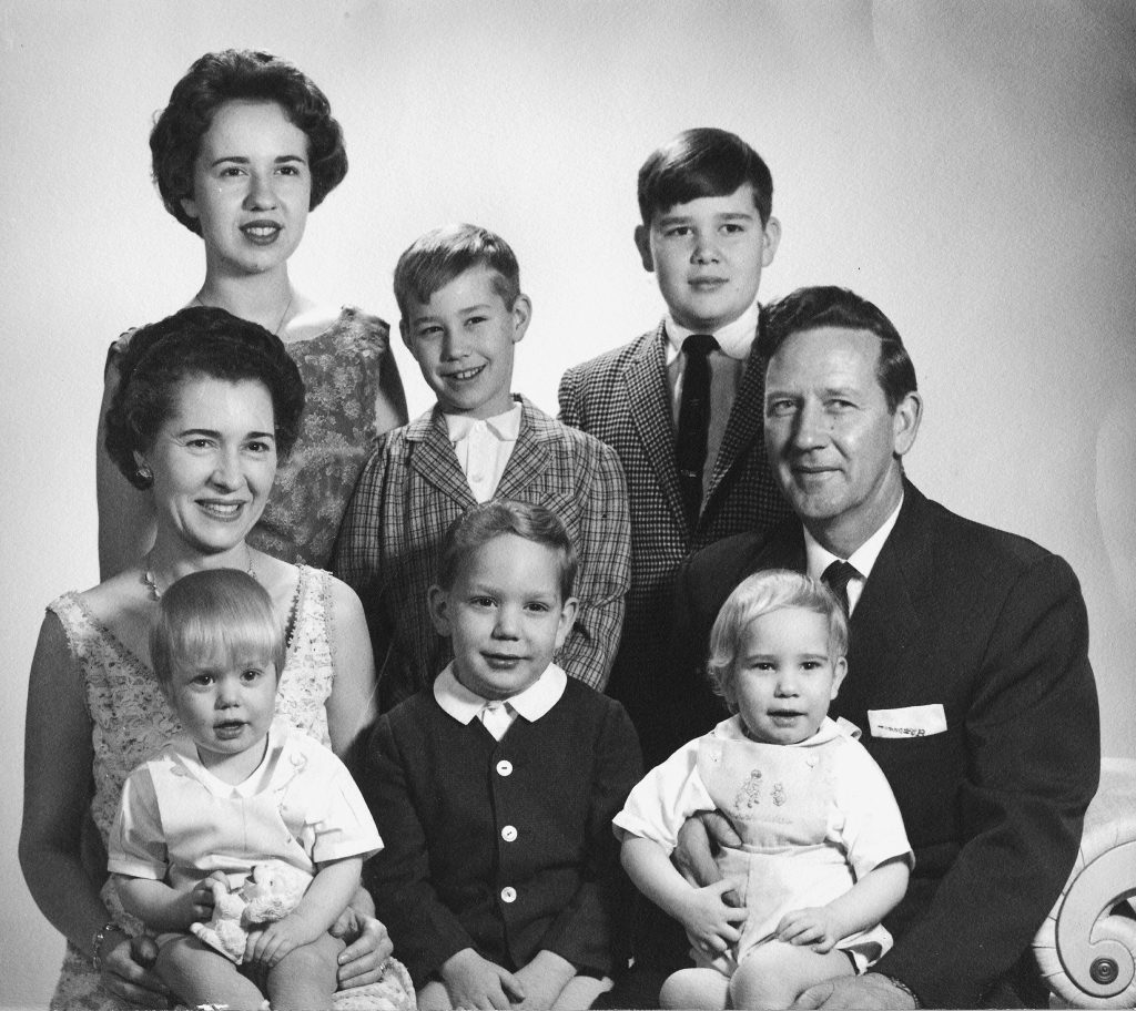 Joseph and Mary Anderson Burks’ family included, front, Paul (being held by Mary), Mark and John (being held by Joseph); standing, Bonnie, Carl David, and Joey.