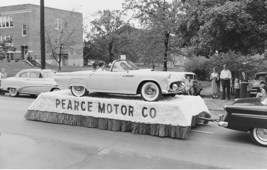 Pearce Motor Co. float graced with the Thunderbird. The Thunderbird was a sensation when it was introduced by the Ford Motor Company.