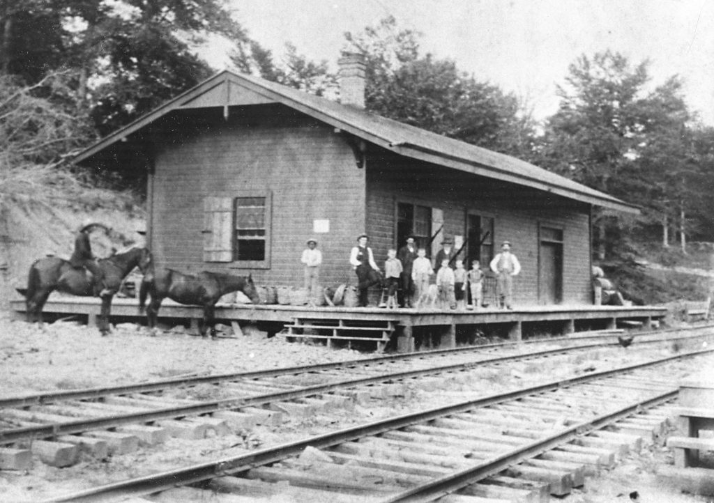 The Hempridge Depot, prior to 1900, included left to right, man on the horse is Waddy Thompson; the rider-less horse is the Jesse’s “Old Parker”; Jim Martin; Claude Clark, depot clerk; first boy is George Jesse; second boy is Frank Jesse; third boy is Guthrie Jesse; fourth boy is Thomas Jesse Jr.; fifth boy is William Shepherd Jr.; the man in the door is Dr. William Shepherd; older man with beard is 90-year-old Lunsford Rucker; and the last man on the right is Millard Fillmore Jesse, station agent.