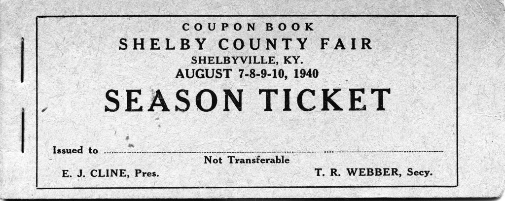 E. J. Cline was president and T. R. Webber secretary when the Shelby County A & M Association issued this Shelby County Fair coupon book in 1940.