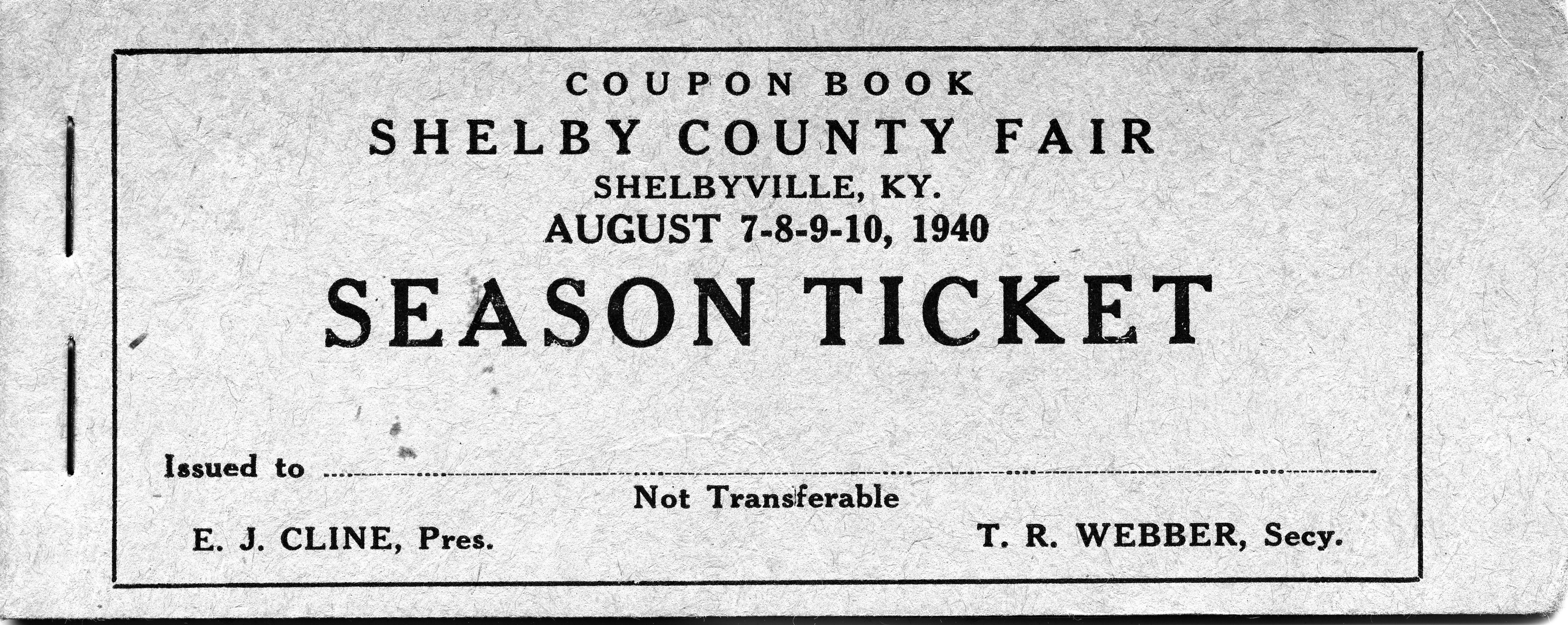 E. J. Cline was president and T. R. Webber secretary when the Shelby County A & M Association issued this Shelby County Fair coupon book in 1940.