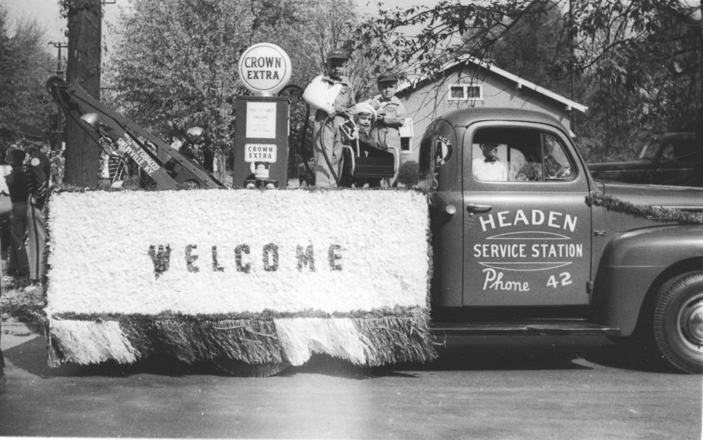 “Doc” Headen Service Station on the south side of Main Street between 7th and 8th Streets offered this float. Note the telephone number: 42.
