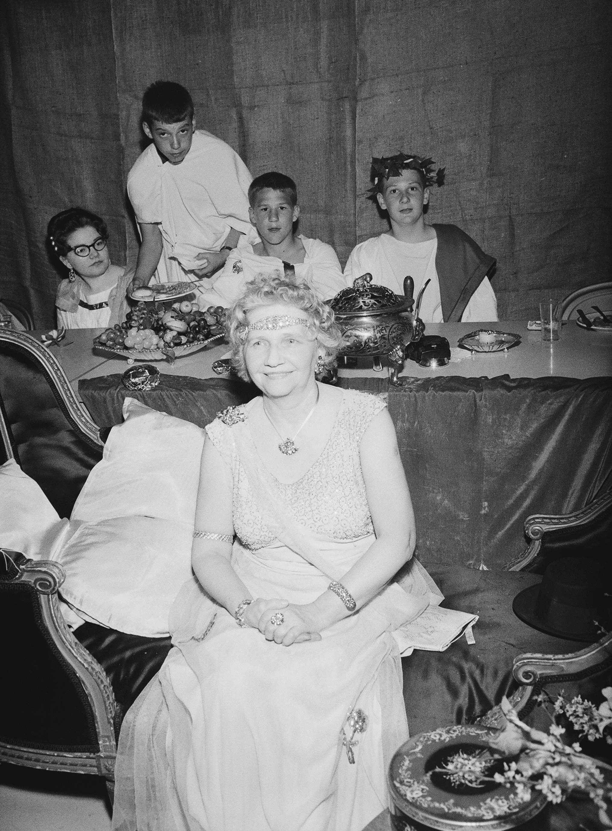 Shelbyville High School teacher Caroline Goodson will be remembered for her “Latin banquets” during the 1960s and 70s. In the background are Sue Carol Streable, Charles Long, Paul Schmidt, and Gordon Brown.