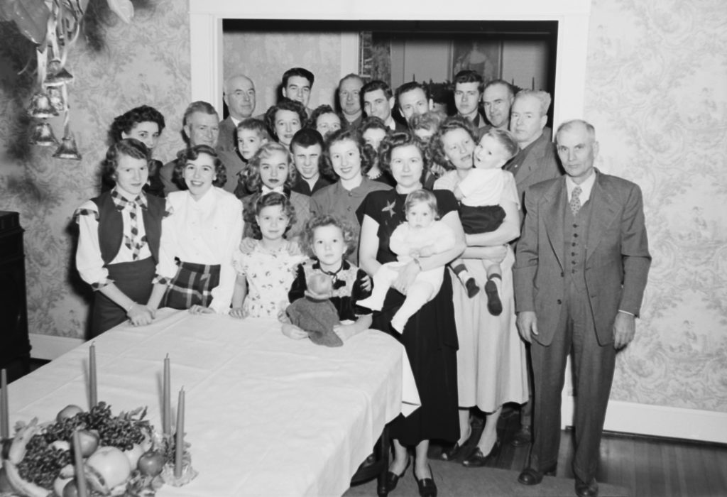 Howard and Mary Pearce on Magnolia Avenue in Shelbyville, possibly in 1948. Among those present were Lucille Shuck Pearce, Jack Pearce, Clifford Pearce, Luther Pearce, Ted Pearce, Walter “Dee” Huddleston, Philip Pearce, Bob Pearce, Frank Pearce, Howard Pearce, Charles Anderson, Julia Pearce, Kathleen Pearce Anderson, Leona Pearce, Margaret Pearce Wilhoite, Jackie Lee Pearce, Charleen Anderson, Peggy Pearce, Kitty Anderson, and Jean Pearce Huddleston. The three missing Pearce siblings are Mamie Pearce Clove, Horace Pearce, and Clay Pearce.
