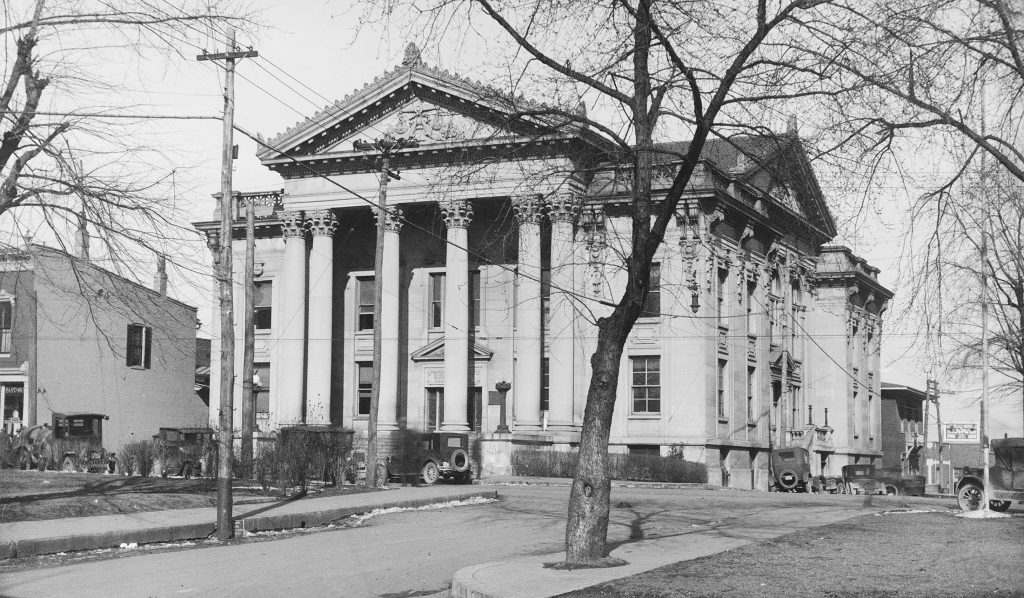 Photo of the outside of Shelby County’s fourth courthouse sometime during the 1920s.