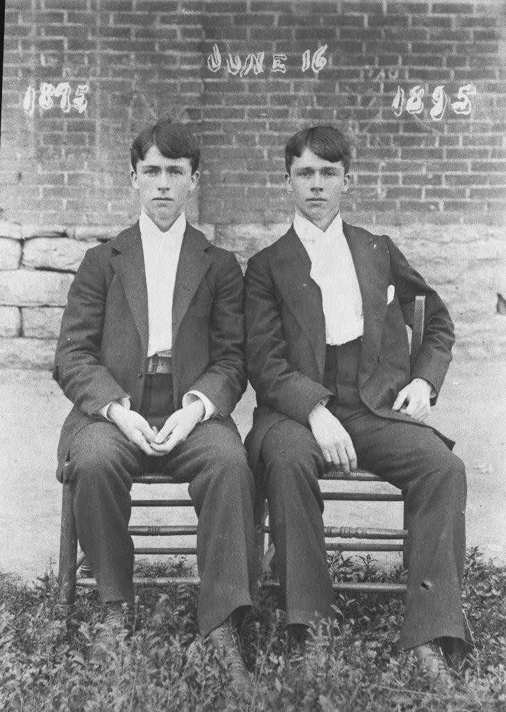Twin sons of John Wesley Williams and Ann Wilson, presumably on their 20th birthday. Photo taken by their brother Otho Williams.