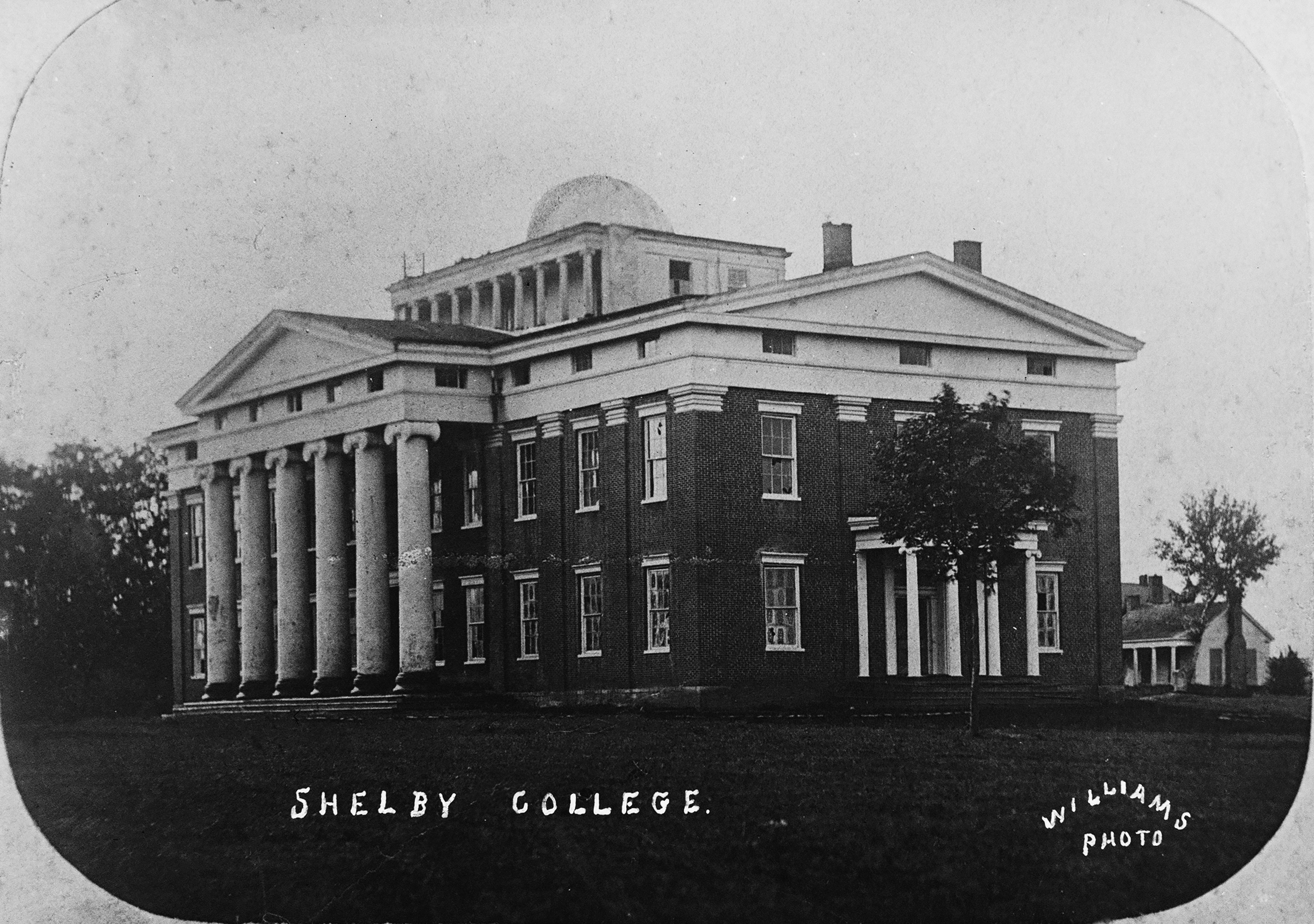 Shelby College was located on College Street. Note the observatory atop the building. It was from this observatory that a full eclipse of the sun was observed in 1869.