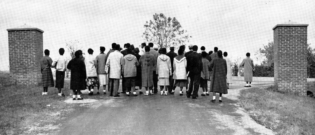 Photo of Lincoln Institute students with their backs to the camera. From the 1958 Lincoln Institute Yearbook.