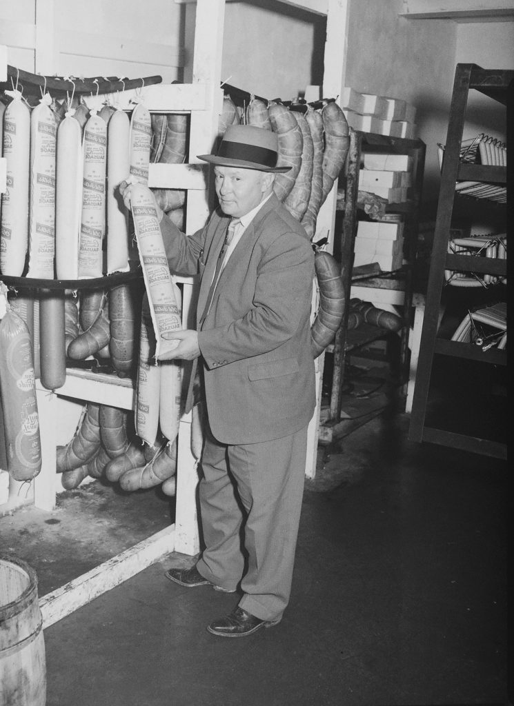 Pictured is Allen Purnell, son of Purnell’s “Old Folks” Country Sausage founder F. B. Purnell, holding a sausage roll. Allen served as the Sales Manager for Purnell’s “Old Folks” Country Sausage for many years.