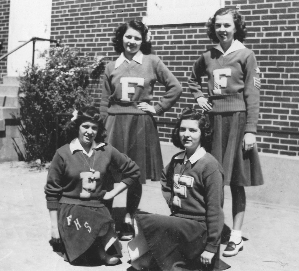 Finchville High School’s basketball teams were cheered on by, clockwise from the top, June Krieger, Nellie McClain, Lillian Woods, and Nancy Durrett.
