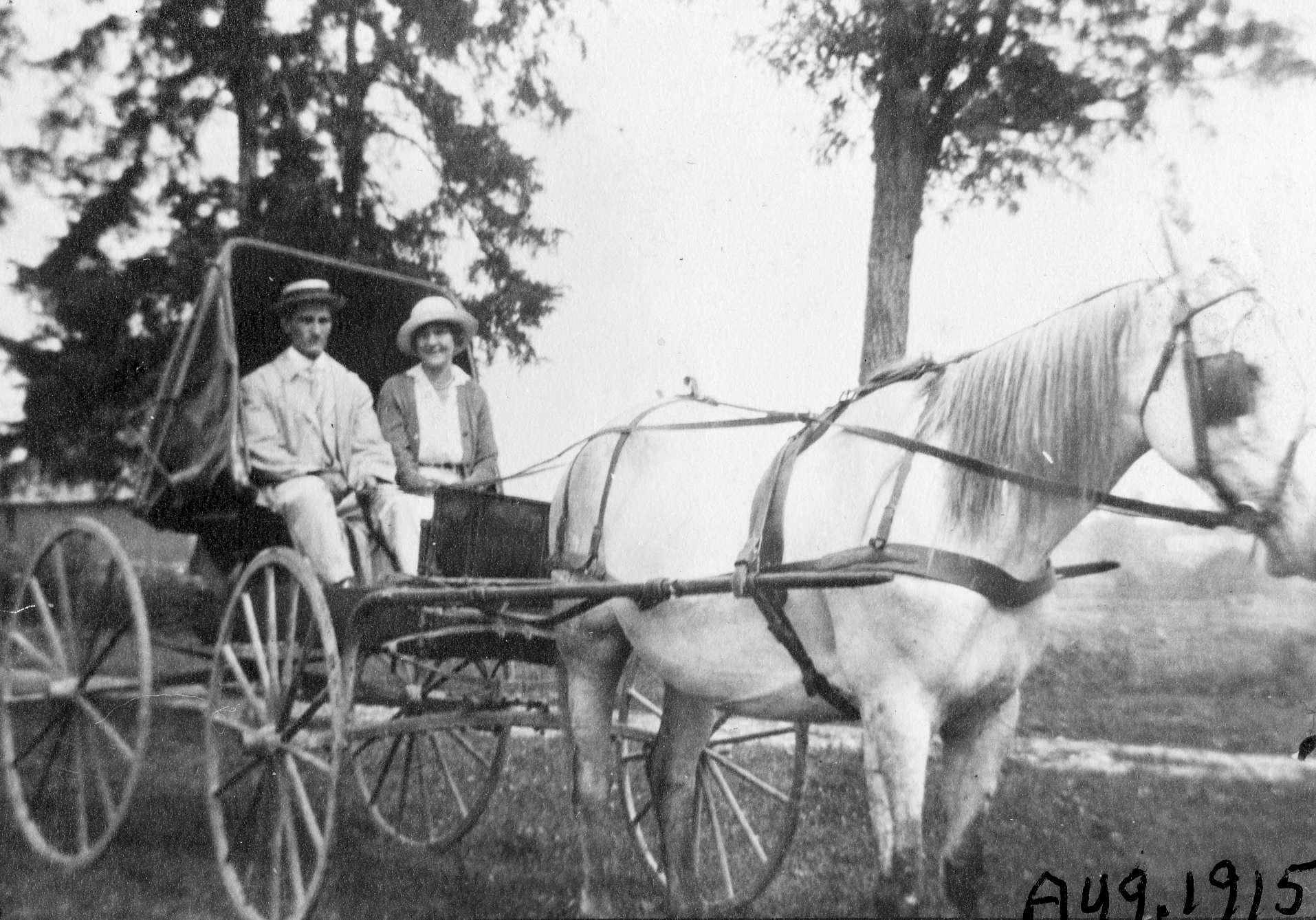 George Hanser and his sister Clara enjoy a buggy ride in August 1915.