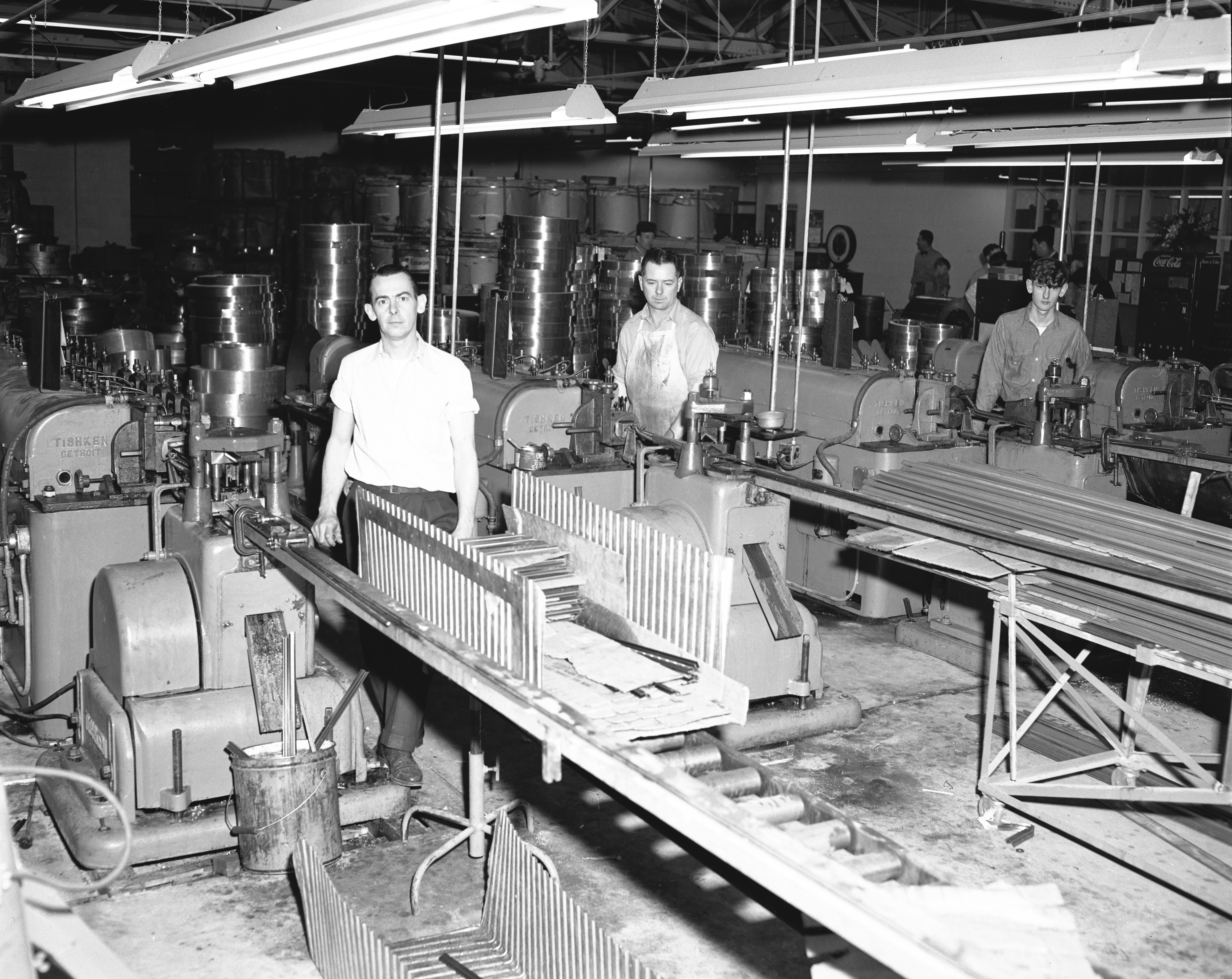 The Roll Forming Corporation began operating a factory on First Street and Goodman Avenue, in Shelbyville, in the 1950s. Pictured are individuals working inside the factory.