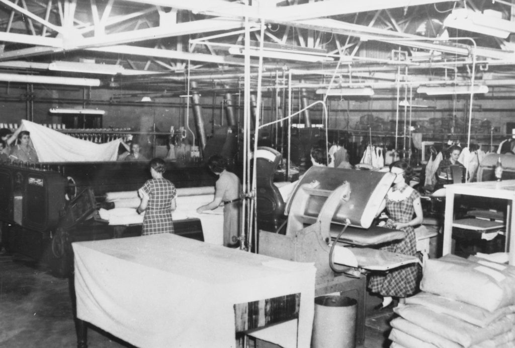Shelbyville Laundry was in full operation at the corner of 10th & Washington Street in the 1950s. Pictured are individuals working inside Shelbyville Laundry.