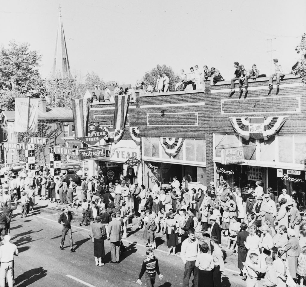 The crowds were everywhere on Tobacco Festival Day, including these folks sitting atop the buildings on the north side of Main Street between 6th & 7th Streets.