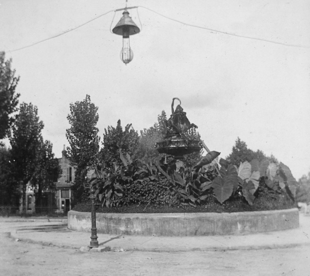 Photo taken from the northeast corner of 5th and Main Streets at the turn of the 20th century. At the time hitching posts and arc lamps were still in use.