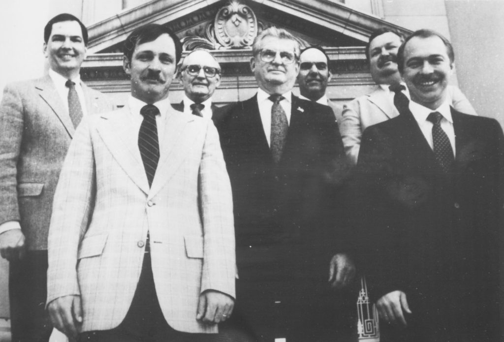 From left to right, Bob Walters, Mike Whitehouse, Robert Wilson, Judge Bobby Stratton, Howell Raizor, Robert Samples, and Tony Carriss.