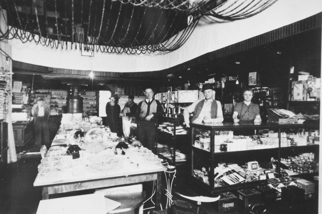 Riester & Co. in 1933 or 1934, Alberta R. Yancey-far right, Leo Riester-second from right, Gilbert Hardesty-third from right