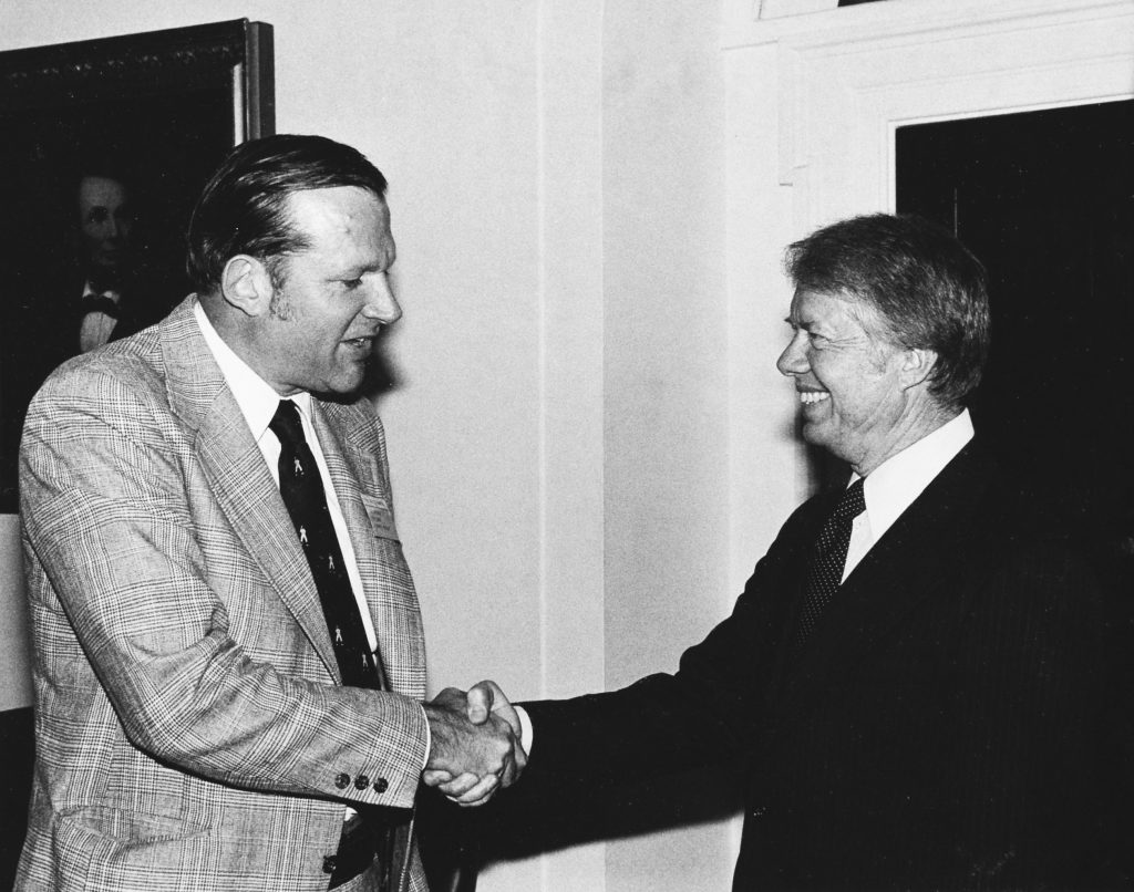 William E. Matthews is welcomed by U. S. President Jimmy Carter to the White House Conference on Rural Journalism in 1978. Matthews, who served as President of the Kentucky Press Association in 1977, represented the state’s rural weekly and daily newspapers at the conference.