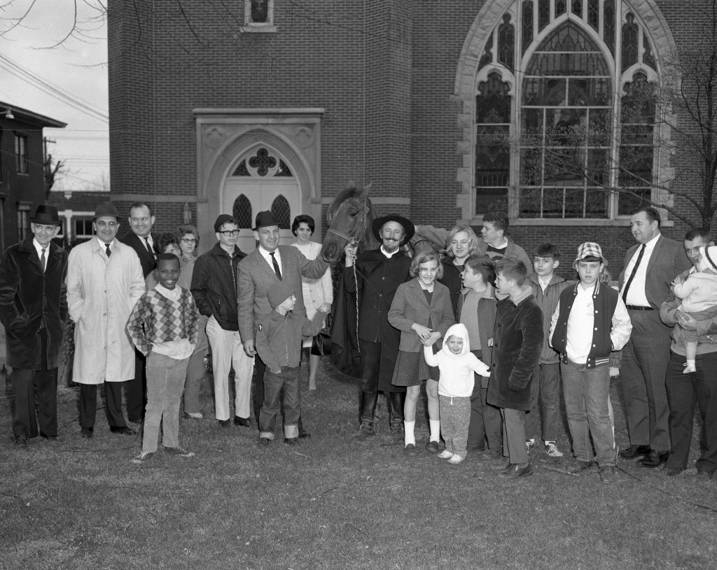 Reenactment of old time circuit rider at Centenary Methodist Church in 1966.