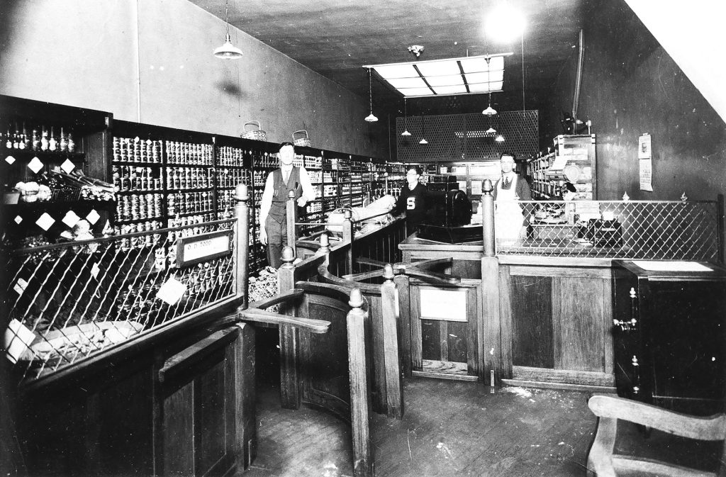 Henry G. Cleveland on the far right, two other unidentified individuals. On the left side of the picture, above the turnstiles, there is sign with the words “O. D. Todd”. An Orrin D. Todd was the manager of the Shelbyville Piggly Wiggly from April 1923 to November of 1929.