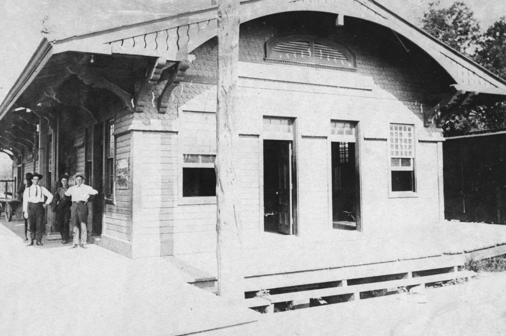 Group of individuals next to the Southern Railroad Depot in Shelbyville.