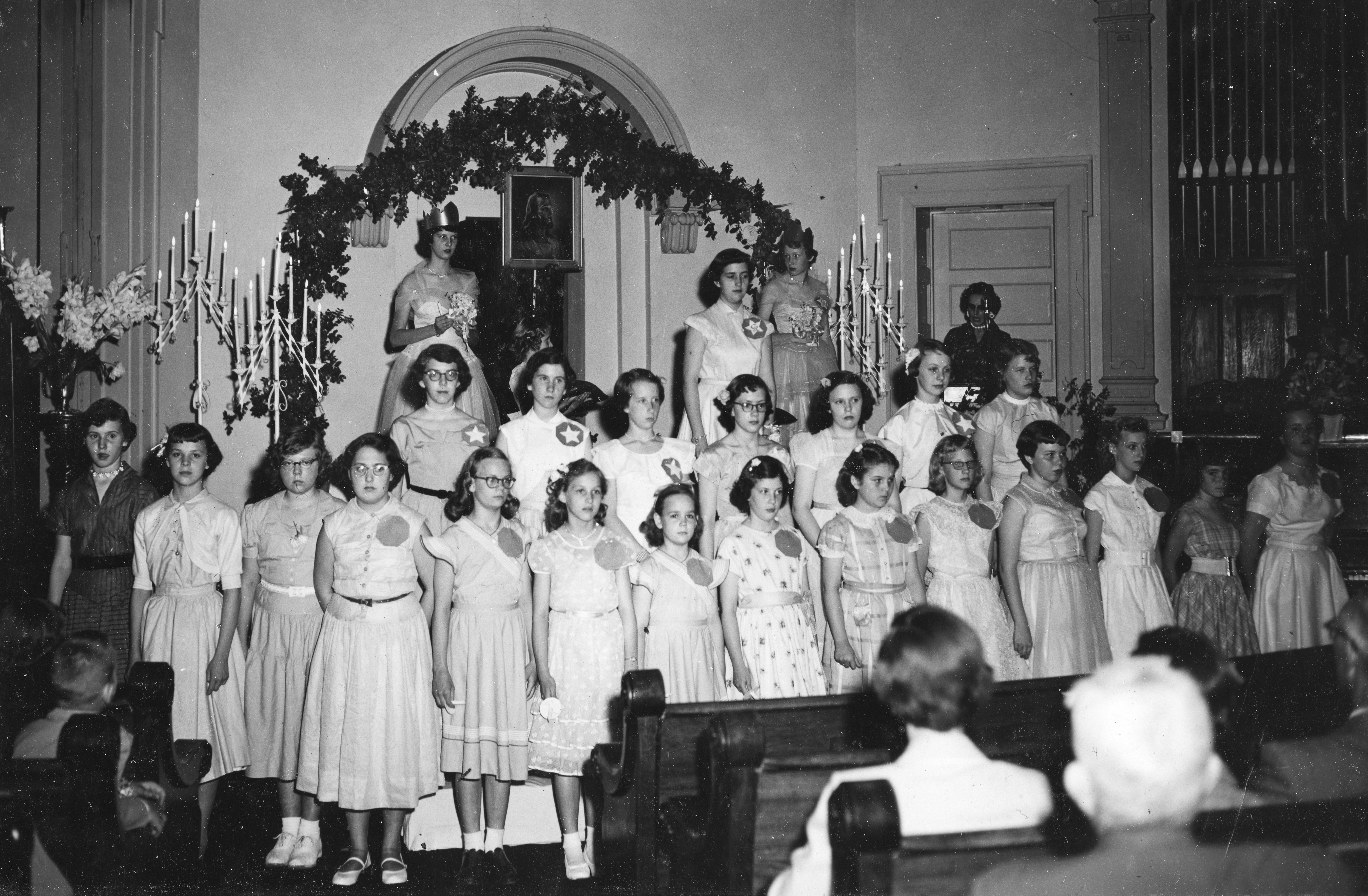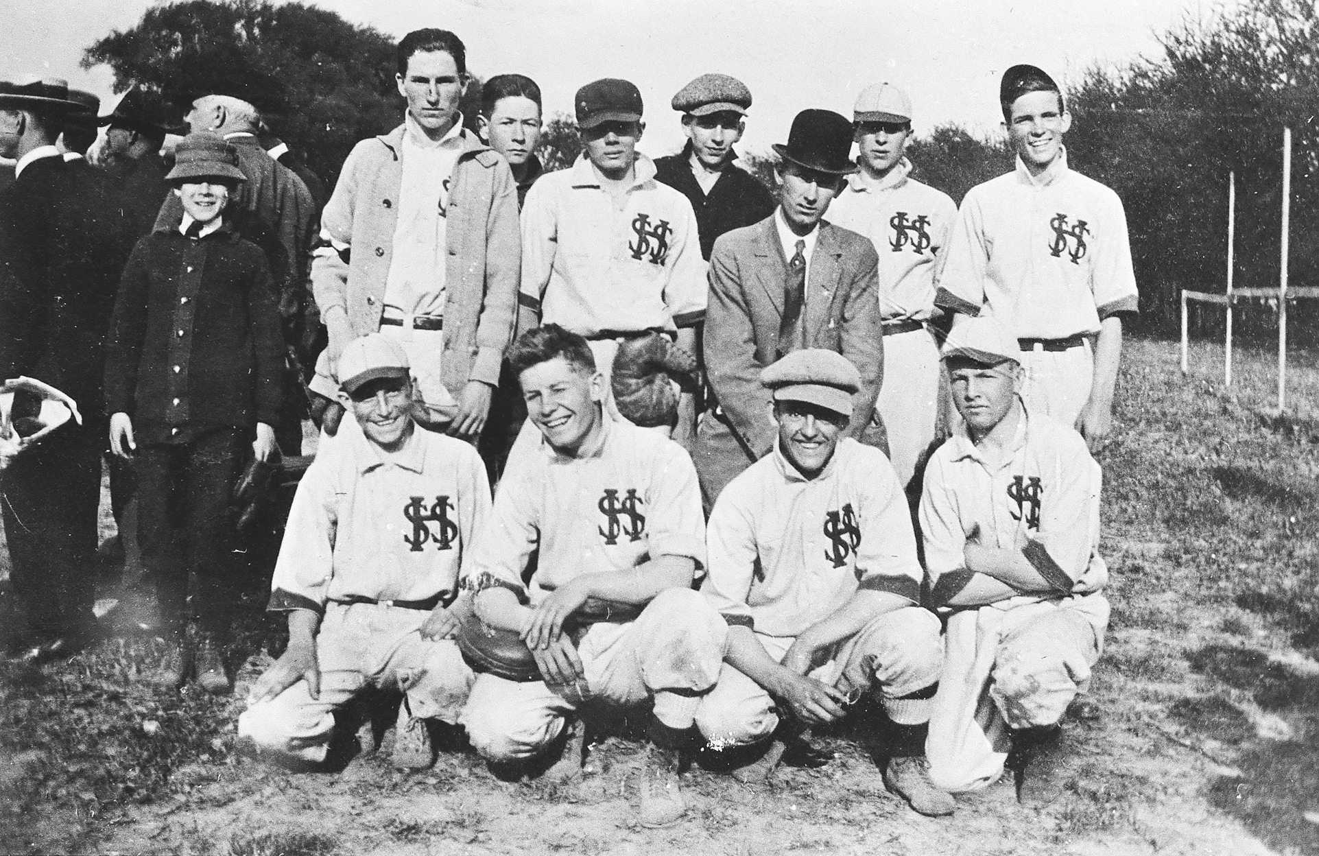 Group of individuals in front of Grove Hill Cemetery’s chapel…