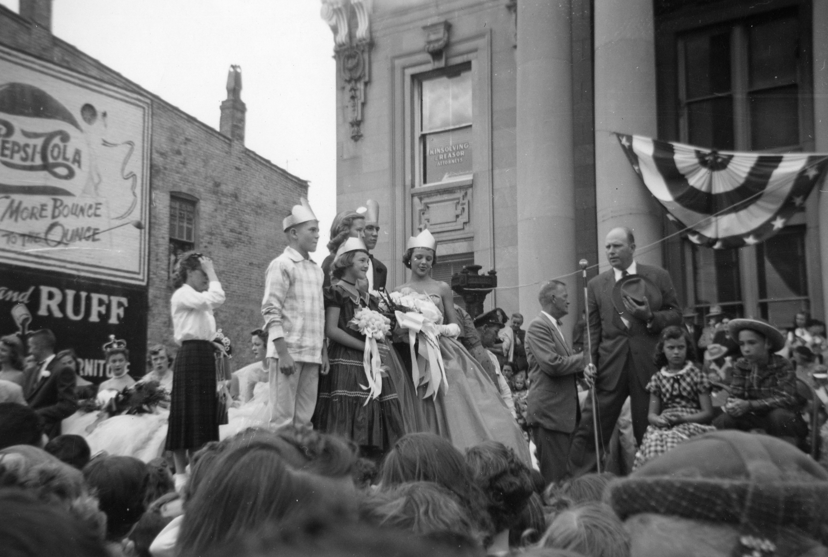 Shelby County Tobacco Festival (1955) Kristin Anderson | December 21, 2025 Individuals, on reviewing stand, in front of courthouse
