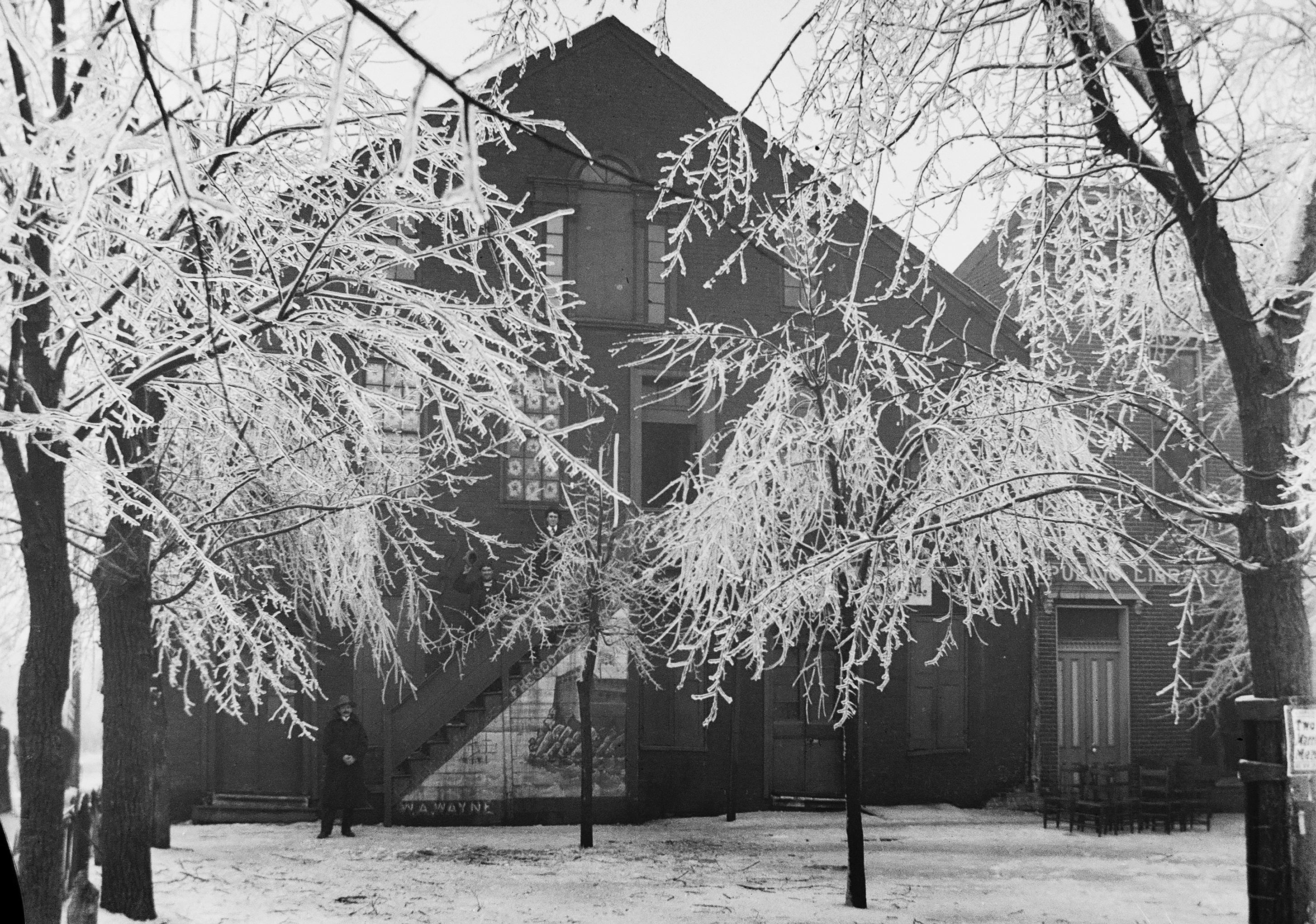 South side of Main Street between 4th and 5th Streets Kristin Anderson | December 3, 2025 Photo of three unidentified individuals standing near or on the stairs