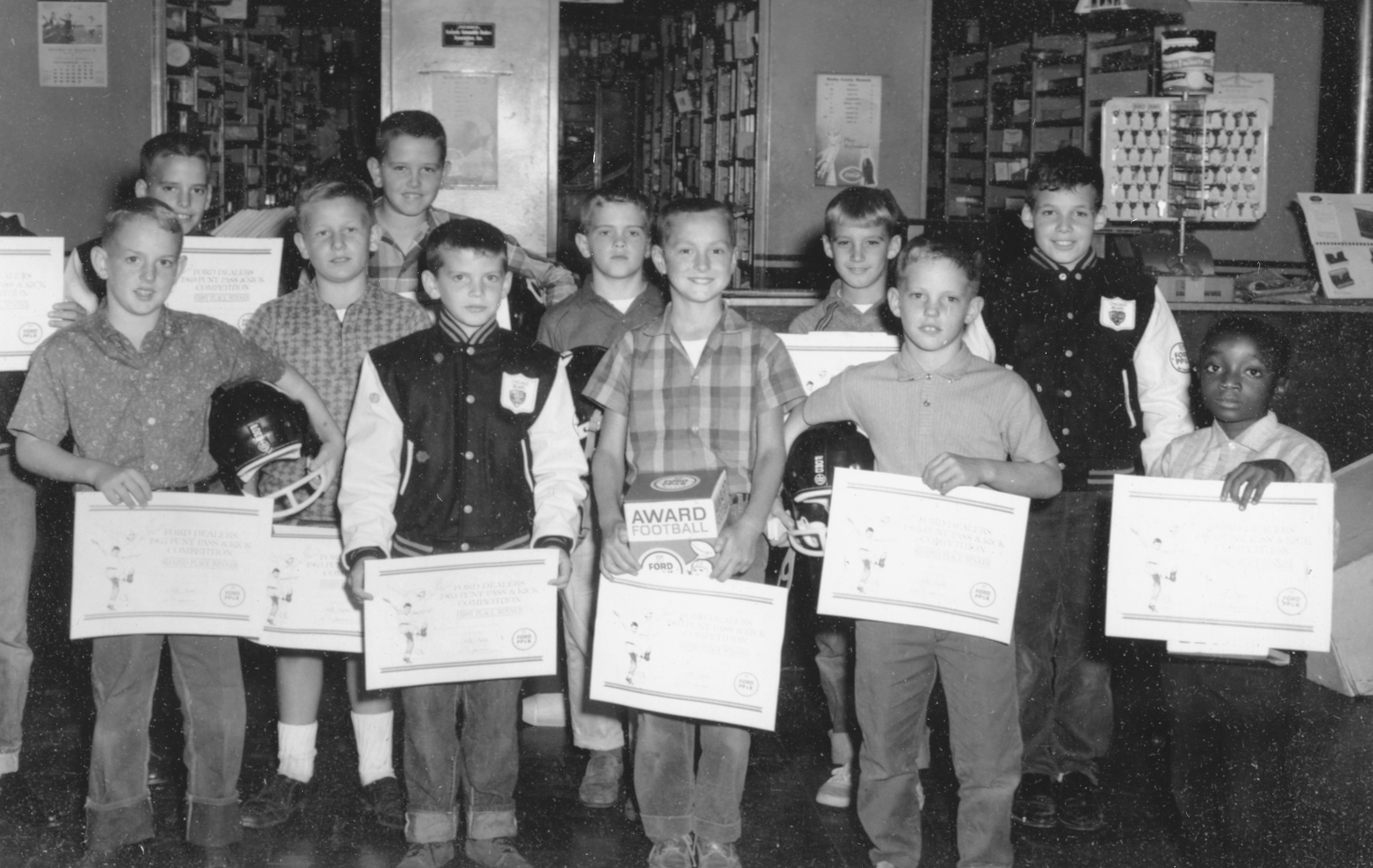 Ford Motor Co.’s “Punt, Pass and Kick” winners (1963) Kristin Anderson | November 9, 2025 Group photo of the local winners for Ford Motor Co.’s “Punt, Pass and Kick” contest