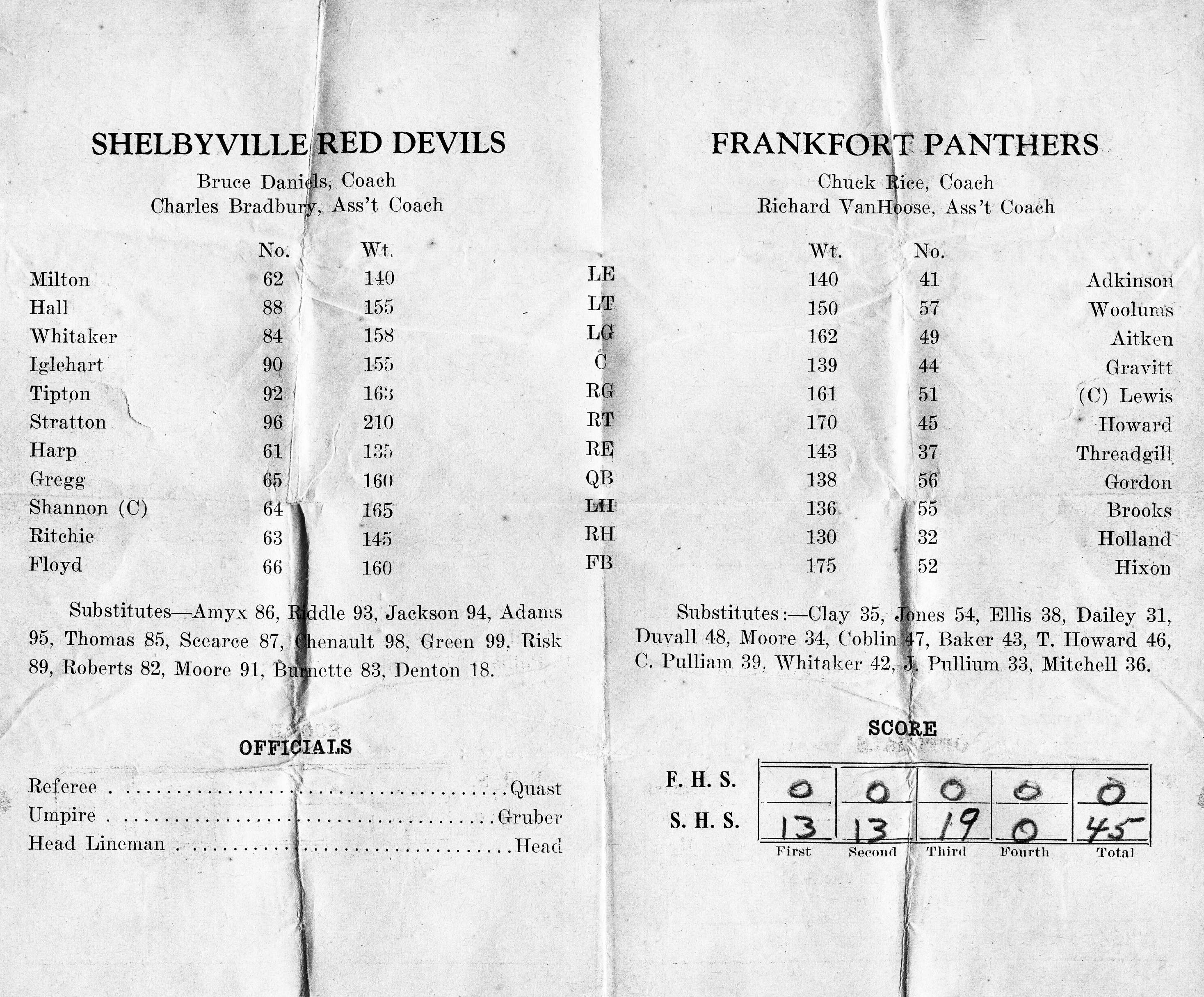 Inside of Football Program for Frankfort HI vs. Shelbyville HI (October 23, 1936) Kristin Anderson | December 18, 2025 Photo of the inside of the football program for Frankfort HI vs. Shelbyville HI (October 23, 1936)