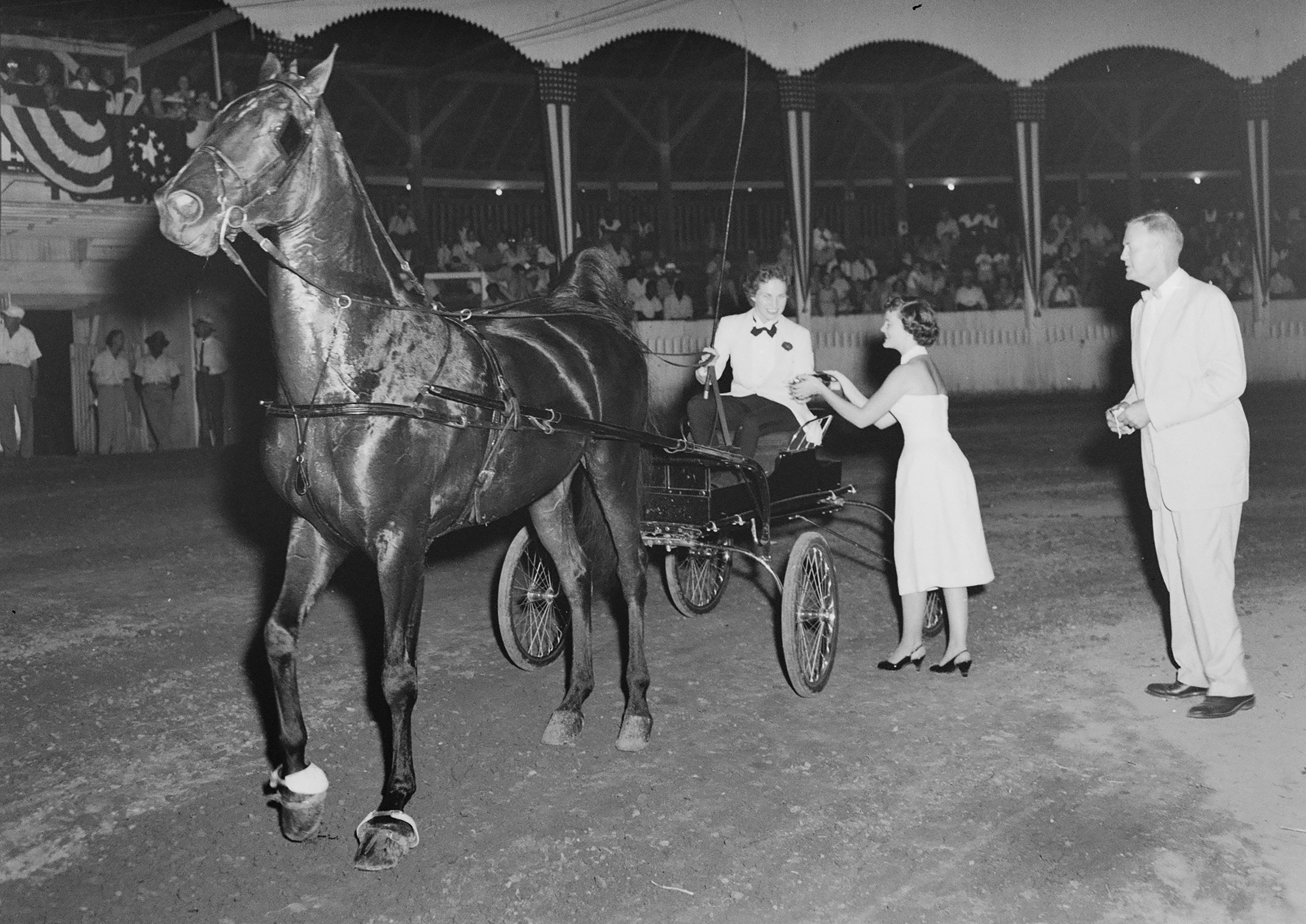 Everett Hall with harness driver and woman Kristin Anderson | December 13, 2025 Ribbon presentation at the Shelby County Fair