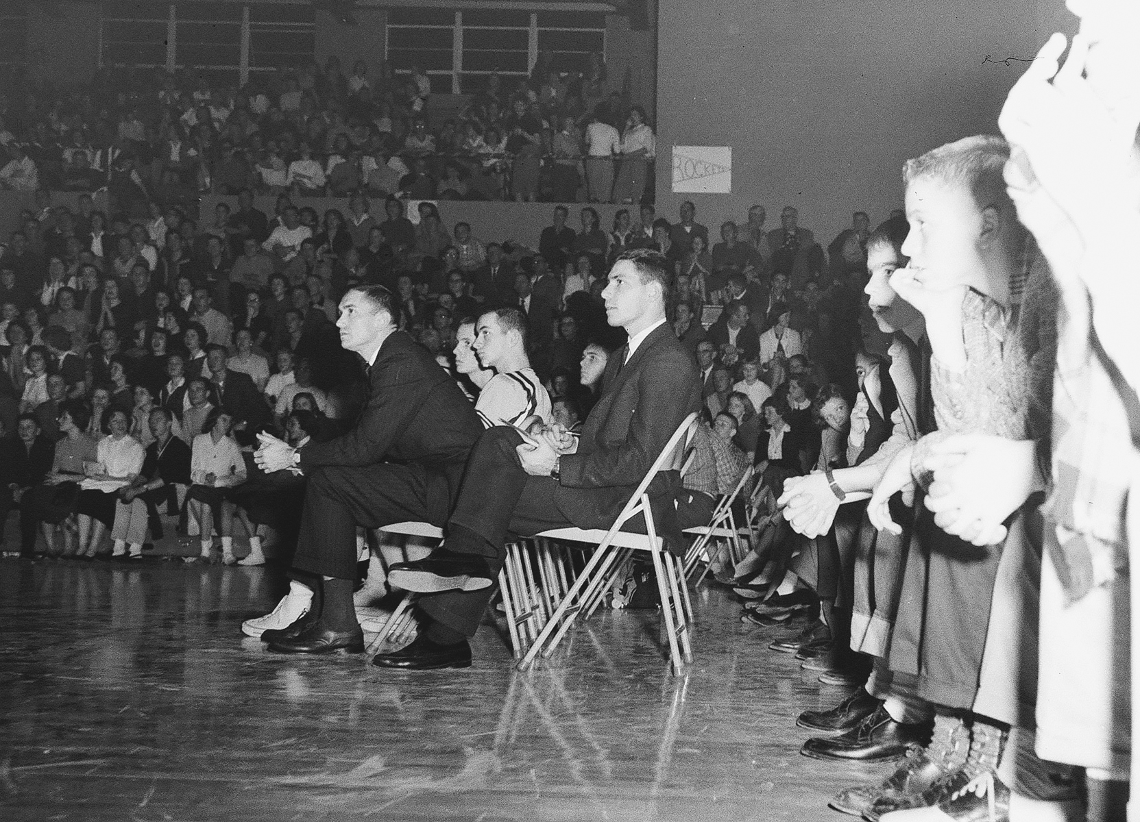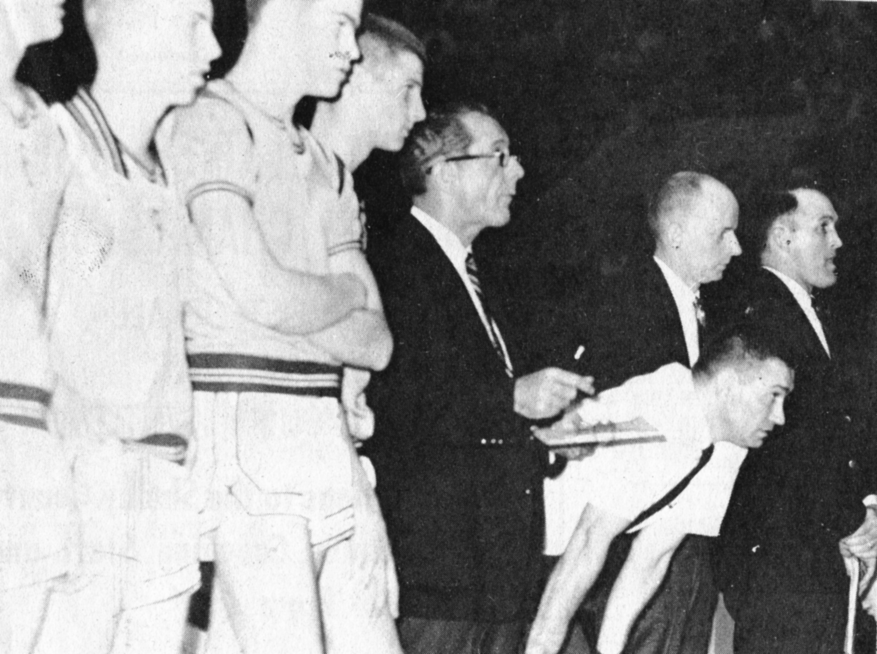 Coach Bill Harrell with others at 1966 game Kristin Anderson | December 13, 2025 Photo taken during the 1966 State Tournament game